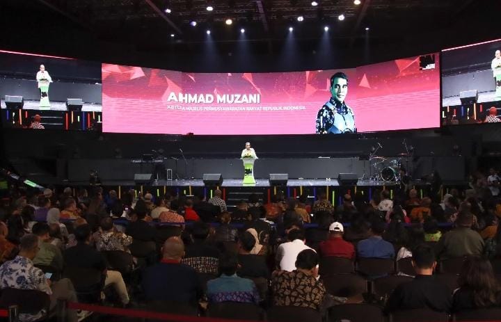 Ketua MPR RI Ahmad Muzani menjadi keynote speaker dalam forum “National Building Nation Conference 2024: Beyond Tomorrow-Shaping Indonesia’s Future 5.0 di Balai Sarbini, Jakarta, Jumat (9/11). Dalam forum ini Muzani menegaskan bahwa yang mempersatukan Indonesia sejak kemerdekaan sampai saat ini adalah Pancasila.